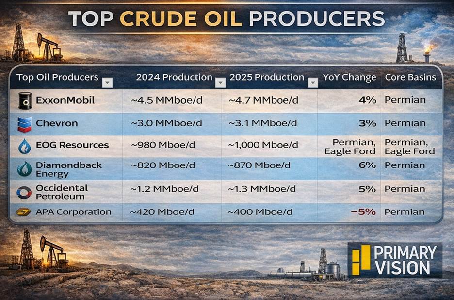 On average, oil-weighted producers increased output by roughly 2.5%, supported by continued activity in the Permian Basin and ongoing efficiency gains.