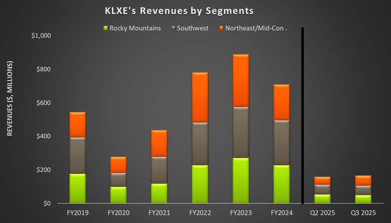 Cash Flows Decreased: KLXE's cash flow from operations decreased by 29% in Q3 compared to Q2. Its free cash flow also decreased substantially in Q3. Its cash balance, however, has significantly reduced since the start of the year. Due to a large accumulated deficit, its shareholders' equity was negative as of September 30, 2025.