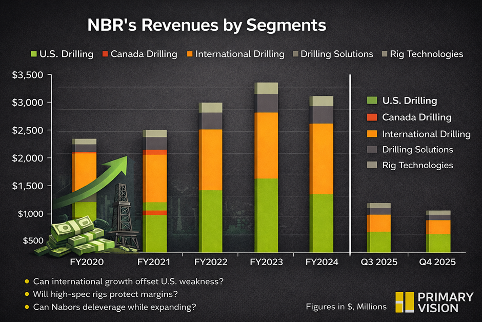 Quarter over quarter, NBR’s revenues declined modestly in Q4, driven primarily by lower U.S. Drilling activity and reduced rig counts in the Lower 48. International Drilling revenues remained relatively stable sequentially, supported by steady utilization and new rig deployments. Drilling Solutions' revenues also declined sequentially following project timing effects.
