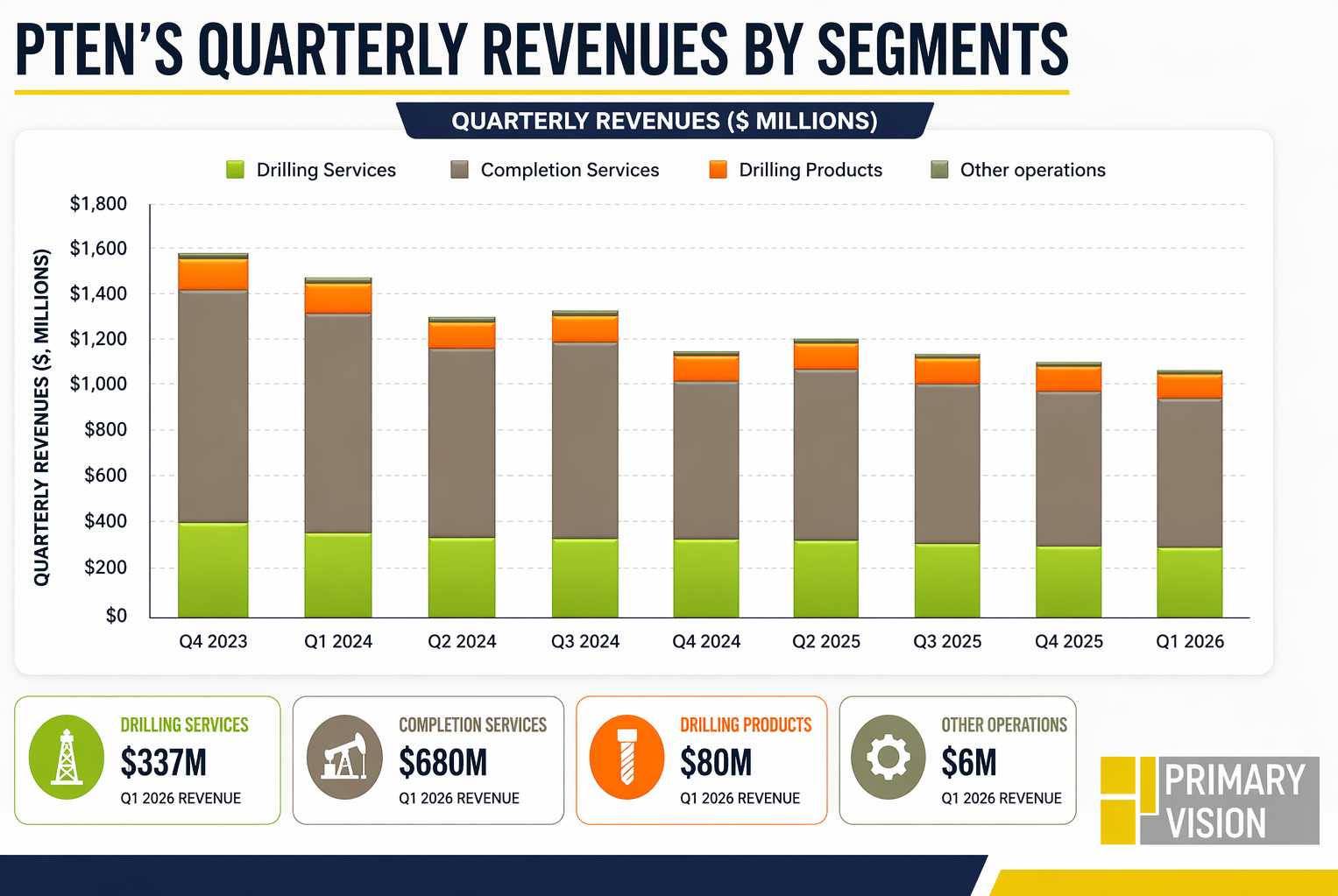 Cash Flows and Dividend: PTEN’s operating cash flow declined year-over-year (69% down), driven by working capital outflows and lower earnings in Q1. Capital expenditures also declined versus the prior year, reflecting disciplined spending in a softer activity environment.