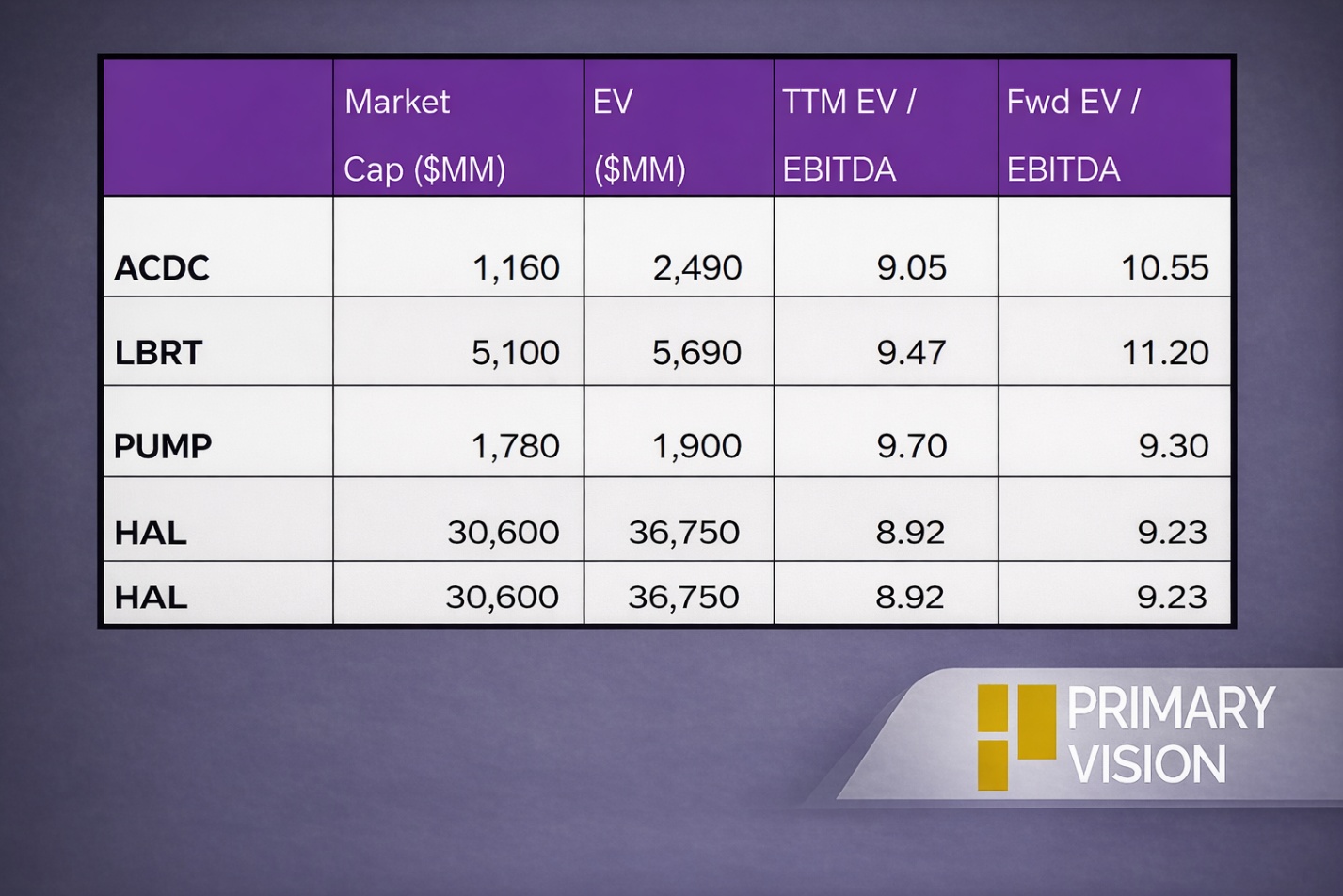 ACDC's forward EV/EBITDA multiple expansion versus the current EV/EBITDA is sharper than its peers because its EBITDA is expected to decrease more steeply than its peers in the next year. This typically results in a lower EV/EBITDA multiple than its peers. The stock's EV/EBITDA multiple is almost at par with its peers' (LBRT, PUMP, and HAL) average (9.4x). So, the stock is overvalued compared to its peers.