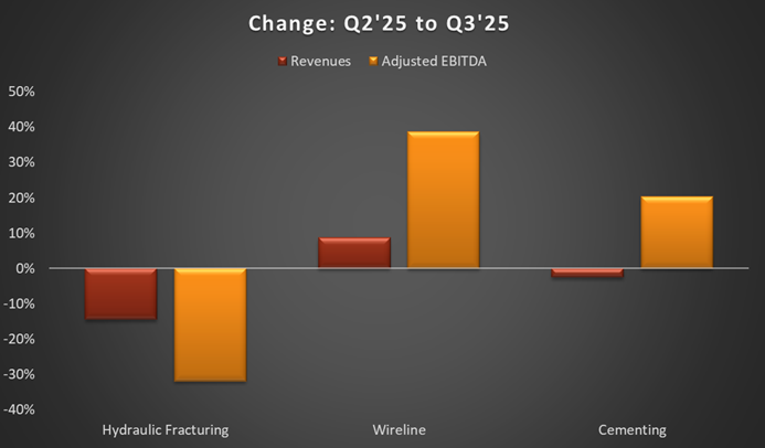 Quarter-over-quarter, PUMP's revenues from the Hydraulic Fracturing segment decreased by 14% in Q3 2025, while its adjusted EBITDA fell by 32%. Lower asset utilization continued to put pressure on its fracturing business. Its revenues and adjusted EBITDA from the Wireline segment, in contrast, surged by 9% and 39%, respectively, in Q3. EBITDA in the Cementing business improved, too, in Q3. From Q2 to Q3, PUMP managed to cut the net loss to $2.3M $7.1M.