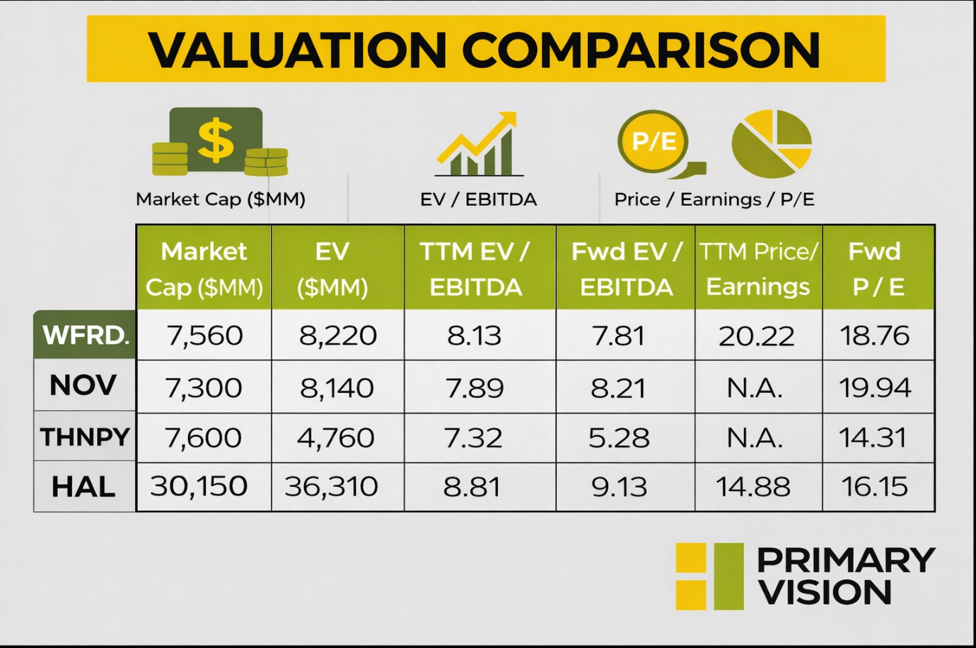 Near term, pricing pressure and softer activity weigh on revenues and EBITDA, but international momentum is expected to improve in the second half. Management is tightening costs, moderating capex, and shifting spend toward IT and efficiency to protect profitability. A stronger balance sheet and disciplined execution position WFRD to stabilize in 2026 and improve into 2027. The stock is relatively overvalued compared to its peers.