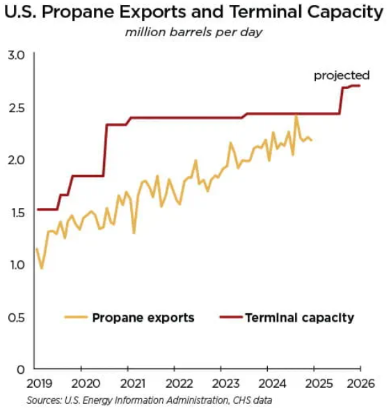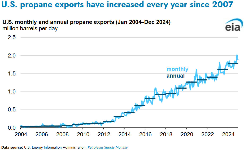 On the export side, growth is moderate: long‑term contracts, expanding tanker capacity, and ethane’s cost advantage support rising flows, with exports projected to reach 540,000 bpd in 2025 and 640,000 bpd in 2026. However, recent U.S. licensing restrictions on shipments to China have introduced friction—several loaded Very Large Ethane Carriers are stalled at the Gulf Coast, disrupting flows despite strong incremental demand