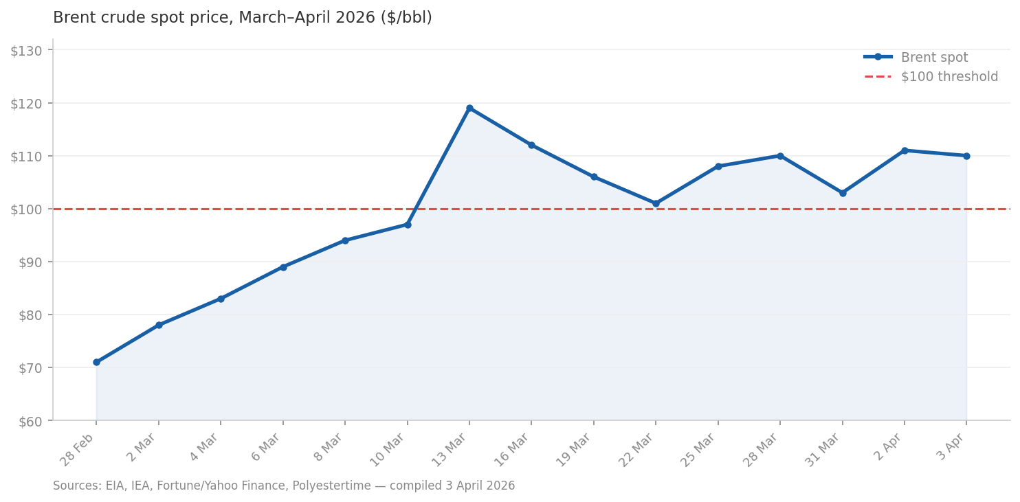Five weeks into the most consequential oil supply disruption in living memory, the market is doing something curious: oscillating. Brent crude is trading in the $105–115 per barrel range, while WTI fluctuates between $103 and $113, reflecting a market driven primarily by geopolitical risk rather than pure fundamentals. One day optimism about a diplomatic breakthrough sends prices briefly below $100; the next, a statement from Tehran reverses all of it. Oil prices jumped approximately 5% in a single session, surpassing $106 per barrel, after markets reacted negatively to political rhetoric that dampened hopes of de-escalation. This is not a market finding equilibrium. It is a market being whipsawed between hope and reality.