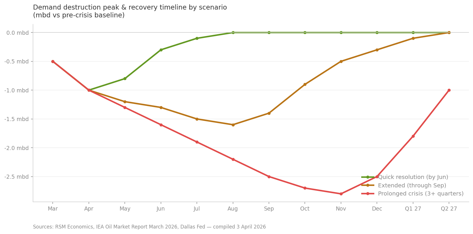 The demand side is beginning to respond as economics dictate it must. Widespread flight cancellations in the Middle East and large-scale disruptions to LPG supplies are expected to curb global oil demand by around 1 mbd during March and April compared to previous estimates, and the forecast for full-year 2026 demand growth has been revised down by 210,000 b/d to 640,000 b/d. Unless the conflict ends very soon, oil consumption will need to adjust to lower supply — perhaps much lower — and that demand destruction is now entering the equation in earnest. It means industries cutting runs, consumers reducing consumption, and economic activity contracting in ways that are slow to reverse even after supply normalises.