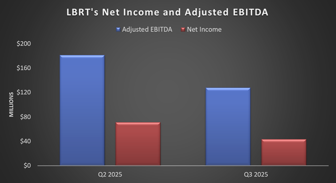LBRT's revenues decreased by 9.1% quarter-over-quarter in Q3, while its adjusted EBITDA dipped by 29%. Its net income fell even more sharply, by 39%, in Q3 after surging remarkably in Q1. The deterioration in financial results in Q3 was due to lower completions activity and weaker pricing, causing margin erosion and underutilized fleets.