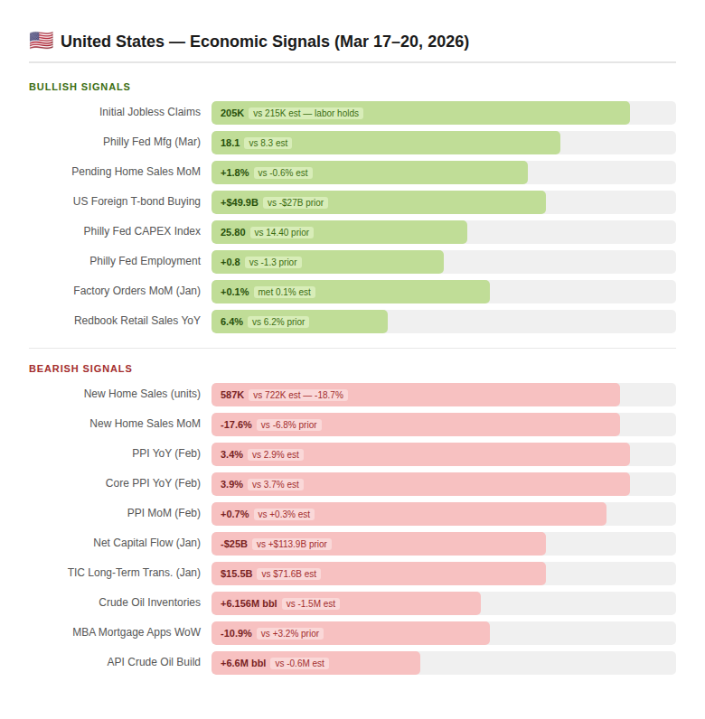 The tragedy is what higher-for-longer is doing to housing. New home sales collapsed to 587K against a 722K consensus — a near 19% miss — with mortgage applications down 10.9% in the same week. J.P. Morgan now projects home prices to stall at 0% in 2026, with affordability structurally broken for first-time buyers at 6.30% rates. Meanwhile the Philly Fed CAPEX index nearly doubling and jobless claims printing well below estimates confirm that AI-driven industrial investment is insulating one half of the economy completely. The US isn't slowing — it's splitting.