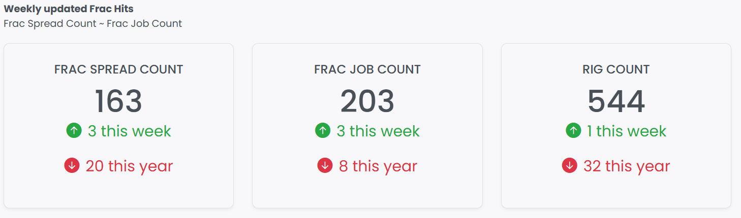 • Frac Hits — our National-Level Frac Spread Count and Frac Job Count, updated weekly