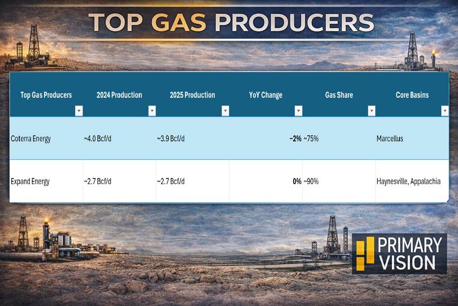 Among the oil-focused producers analyzed, natural gas accounts for roughly 39% of total production on average. This means a substantial portion of the U.S. gas supply is tied to oil-directed activity rather than standalone gas economics. As long as oil production continues in the Permian Basin, associated gas volumes will continue to grow, regardless of short-term gas price movements.