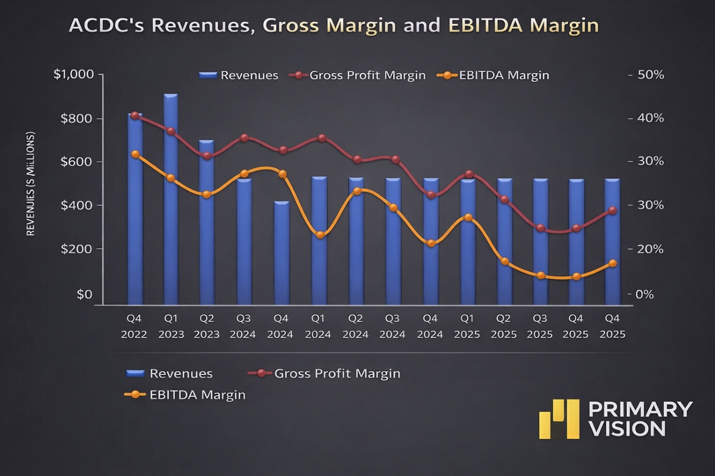ACDC is currently trading at an EV/EBITDA multiple of 9.1x. Based on sell-side analysts' EBITDA estimates, the forward EV/EBITDA multiple is 10.6x.