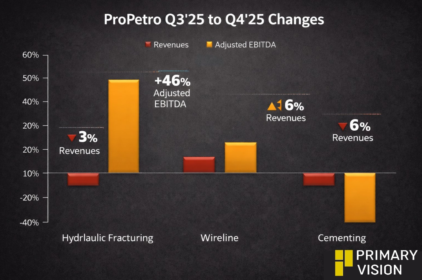 Segmentally, Hydraulic Fracturing revenue declined about 3%, while Wireline revenue increased roughly 6%. Cementing revenue fell approximately 6% sequentially. Net income improved from a loss in Q3 to modest profitability in Q4, reflecting stronger operating leverage despite lower activity levels.