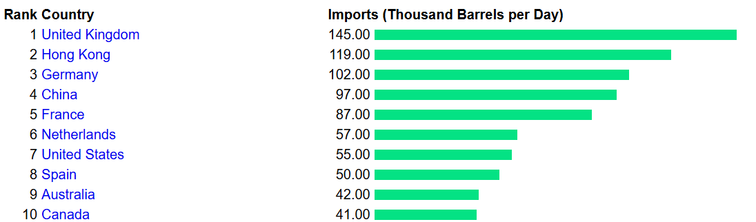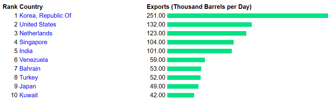 Jet fuel competitiveness begins upstream with crude. The United States is the world's largest crude oil producer and, according to EIA jet fuel production data, U.S. refinery and blender net production of kerosene-type jet fuel averaged about 1.825 million barrels per day in 2025. The Middle East holds some of the world's lowest-cost oil and gas resources, which underpins the structural upstream advantage of major Gulf producers such as Saudi Arabia, Iraq, the UAE, and Kuwait. Russia remains a major crude exporter, but sanctions have shifted a larger share of its oil exports toward Asia. Canada is also strategically important because its crude exports to the United States amounted to 24% of U.S. refinery throughput in 2023, reinforcing its deep integration with the North American and U.S. Gulf Coast refining system. South Korea and the Netherlands demonstrate that owning crude is not a prerequisite — both import at world market prices, refine with exceptional efficiency, and export the surplus, competing purely on the value-added layer above the ground.